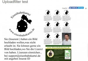 Die Uploadfilter sind bei uns nun startklar und einsatzbereit beim Inserieren auf der Eisenbahnkartei! Der Status ist immer bei „Inserat schalten“ einsehbar….
